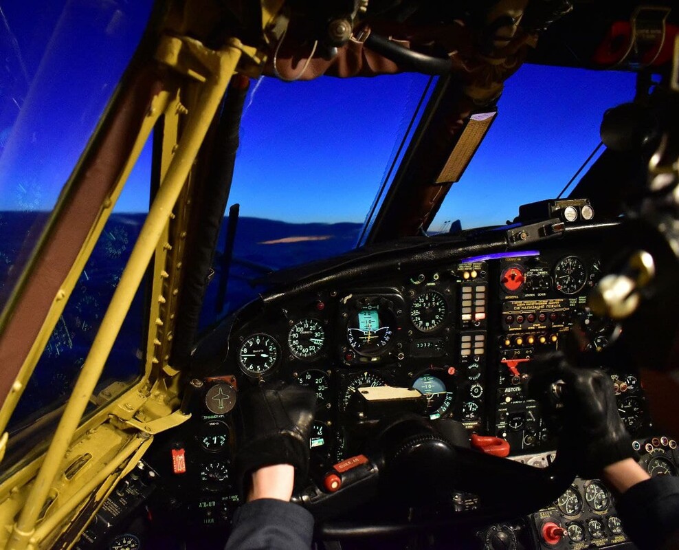 Сумеречного Ан-12 в ленту с видом с места командира экипажа